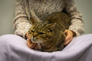Kocurek ma około 5 lat, jest bardzo zrównoważony, spokojny i delikatny. Nie ma w nim cienia zniecierpliwienia, kiedy człowiek go bierze na kolana. Łagodny, dobroduszny, czuły, tolerujący inne koty i psy, które widuje przez klatkę.